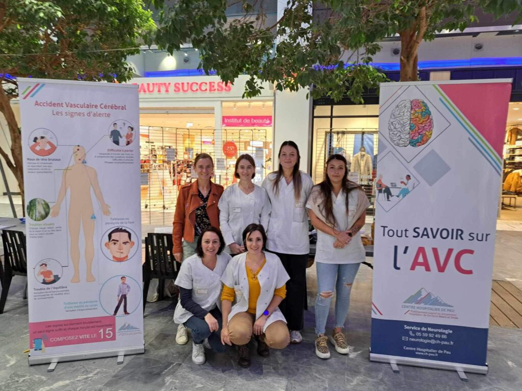 A l’occasion de la journée mondiale de l’AVC qui se tient au cours du mois d’octobre, les professionnels du service de neurologie ont mené une action au sein d’un centre commercial afin de sensibiliser le grand public sur les facteurs protecteurs et les gestes de premiers secours liés à l’AVC. Des temps de dépistage de pathologies cardio-vasculaires ont également été réalisés, facteurs de risque principal de l’AVC. Suite à cette action, de nouvelles interventions sont programmées en 2024 à l’attention des usagers et des professionnels du territoire Béarn et Soule.