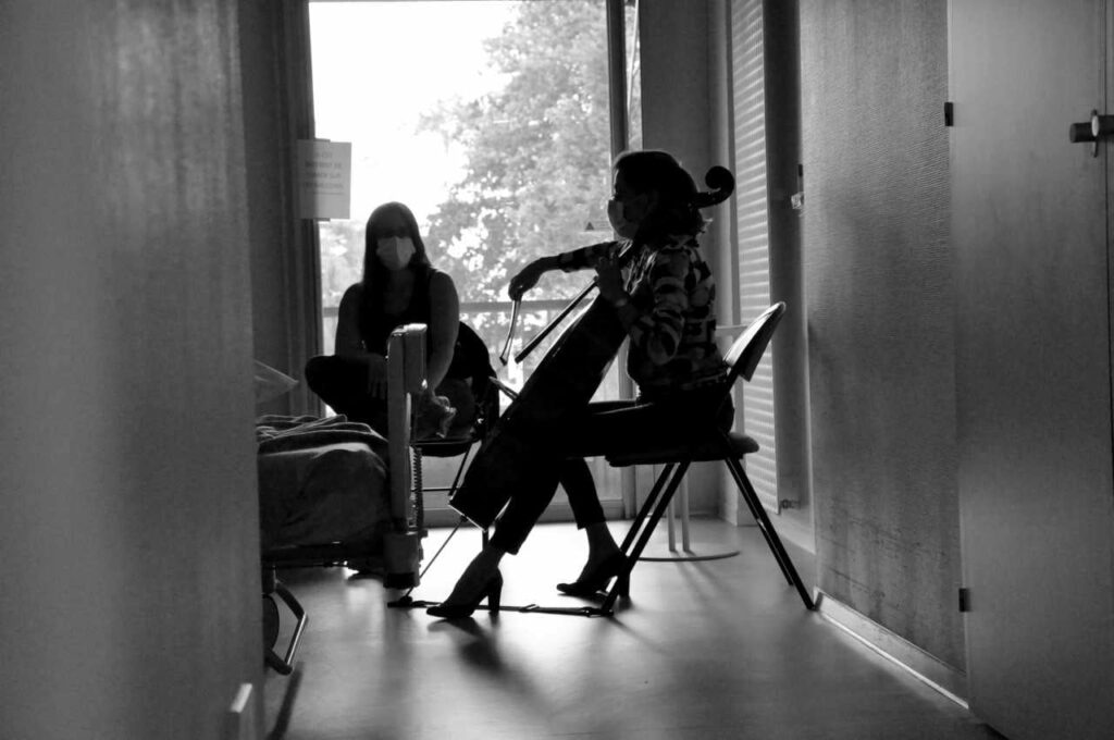 Au cours de l’année 2023, le Centre hospitalier de Pau a accueilli toutes les semaines dans ses services de soins une violoncelliste dans le but de rompre avec l’atmosphère véhiculée par le milieu médical. En effet, l’hôpital est un lieu où l’usager est dans l’attente d’un diagnostic ou d’un soin, situations pouvant être considérées comme stressantes ou anxiogènes. Outre l’aspect envoutant du violoncelle, ce projet avait également pour mission favoriser les interactions et de réintroduire le plaisir de l’écoute à l’attention des patients hospitalisés et des professionnels.